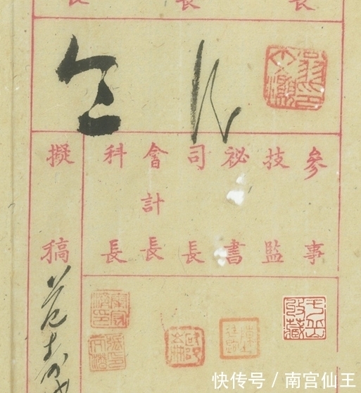 最后回到我所藏这两份文献上来,除了专利之外,从中亦可管窥当时在经济部内是怎样一层一层走流程的。此两份文稿,是由范寿x(应是科员或“笔帖式”一类职员)拟稿,然后逐级上达,钤印我皆已辨识,先后审阅并盖章(或亲批)的人有: